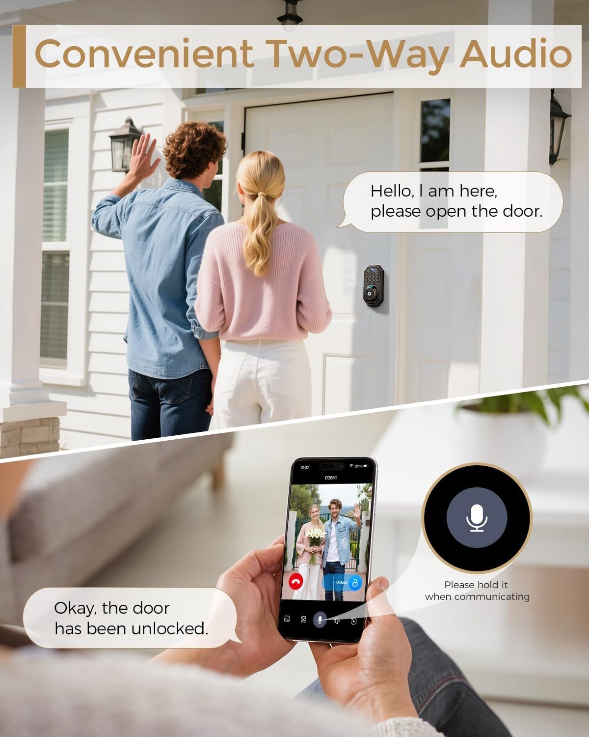 【Remote Access & 2-Way Audio for Daily Convenience】 Receive instant app alerts and live video feeds when the doorbell is pressed. Communicate with visitors via two-way audio, unlock doors remotely, and check access logs—perfect for managing deliveries, guests, or home entries without physical presence.