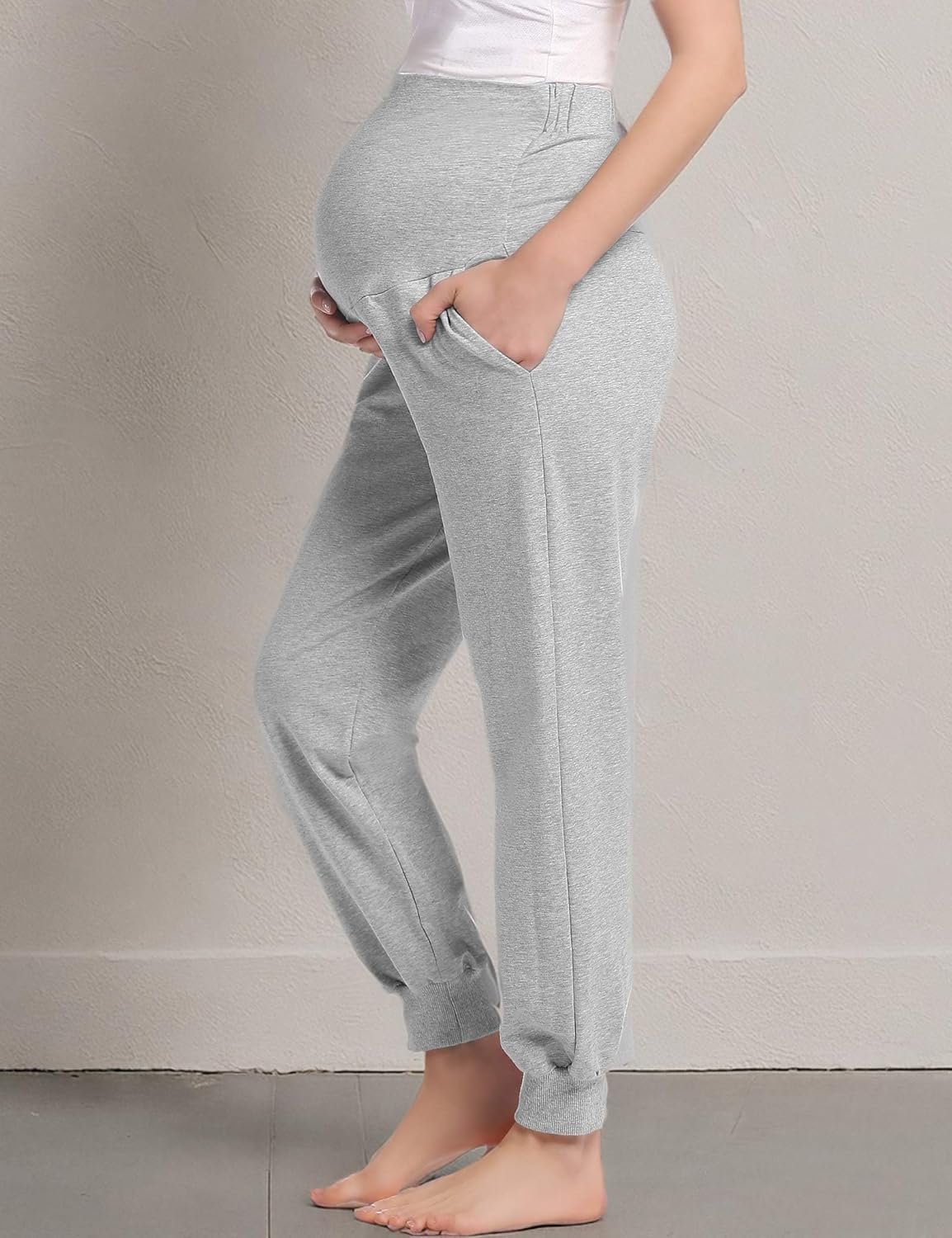 Women’s Cotton Maternity Jogger Pants Over The Belly with Pocket – Pregnancy Lounge/Pajama/Pj Sweatpants S-XXL