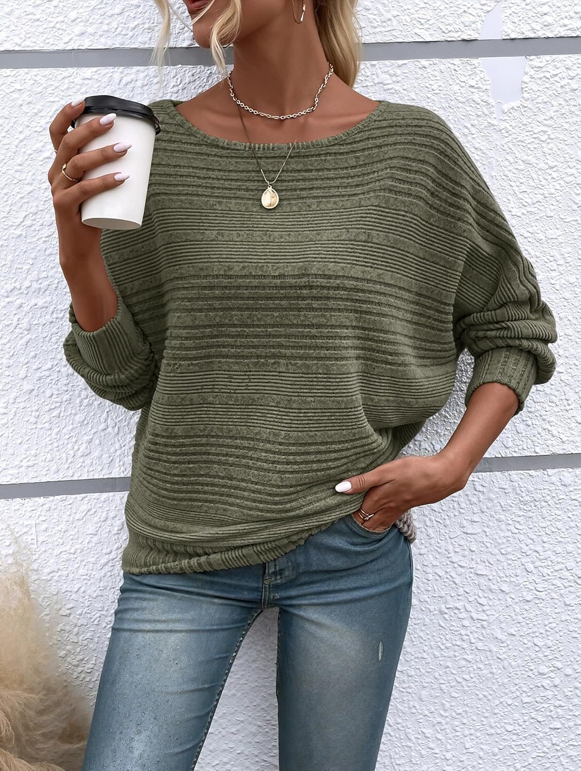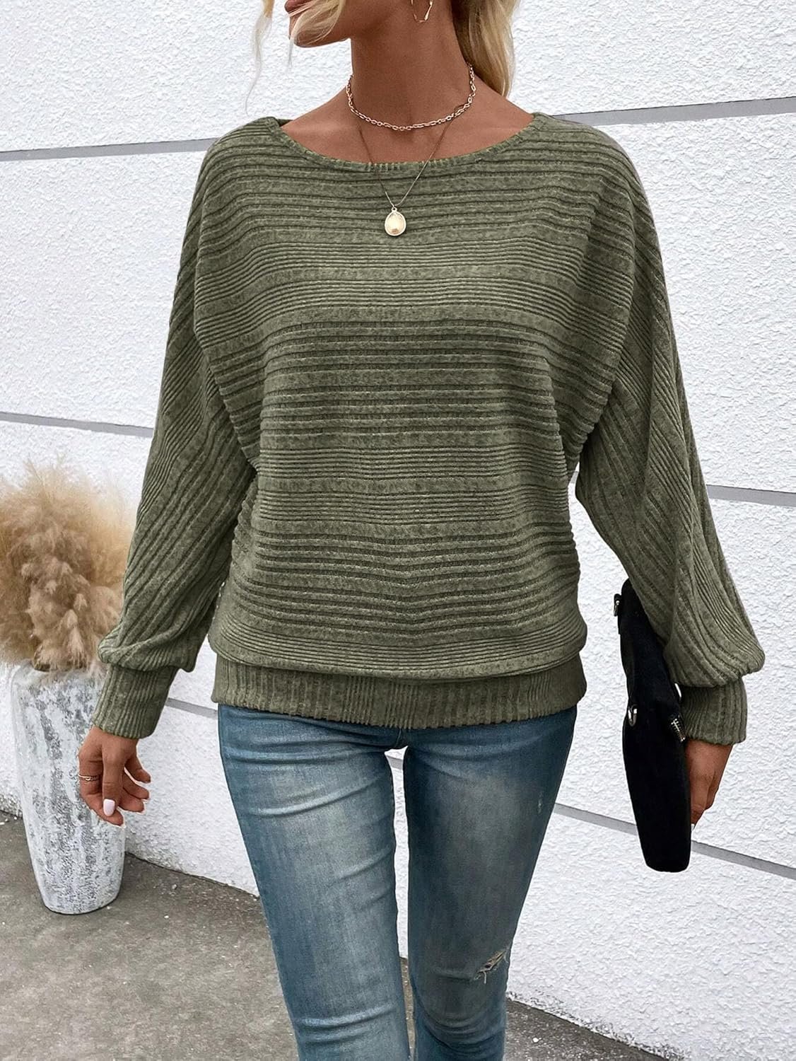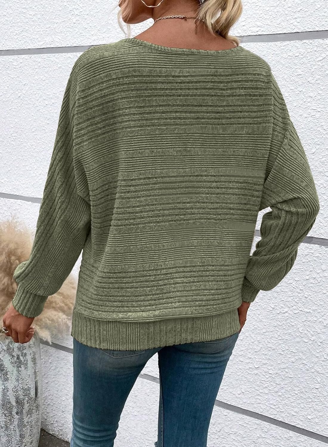 The video showcases the product in use.The video guides you through product setup.The video compares multiple products.The video shows the product being unpacked. Womens Long Sleeve Pullover Sweaters Merchant Video