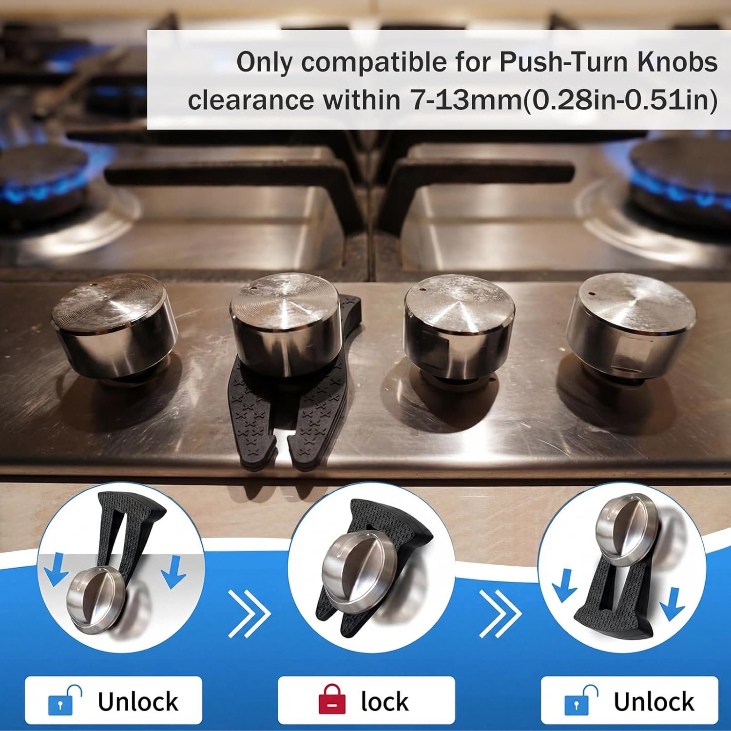 Effortless Installation: no need for tools or complex processes, the easy installation of these gas stove safety knob covers can let use in ease, simply position and secure them over your stove knobs without removing the stove knob